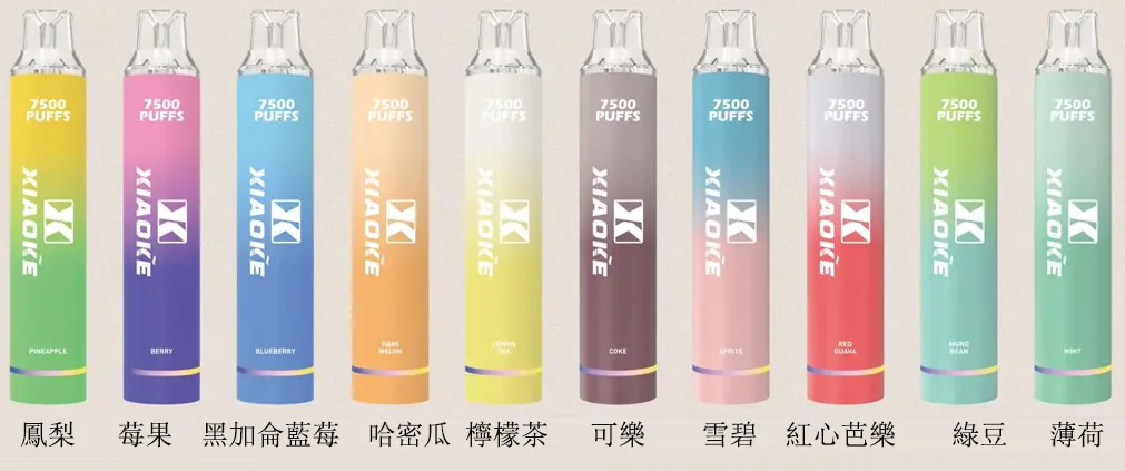 | 產品名稱/總口數 | 梟客 XIAOKE 7500 口拋棄式電子煙;7500 口總續航(相當於 15 包傳統一次性電子煙,使用周期更長) |